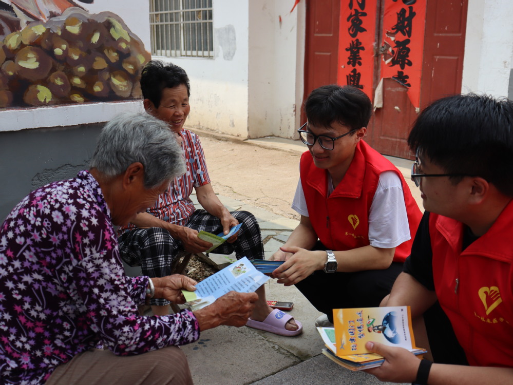 助学支教传知识,文化赋能促成长。志愿服务队在学校省派第一书记的支持下,在许孟镇65个村组织开展一对一家教义务课程云辅导,学院挑选成绩最优秀的学生,选取自己擅长的科目,根据孩子们的需求一对一结对帮扶,建立长效机制,为乡村教育振兴贡献自己小小的一份力量;推广普通话教育宣传,利用国家智慧教育读书等数字资源平台,开展“典耀中华”主题读书活动,为学生全面发展打好语言基础;在潍坊市疾控中心专家指导下,志愿者们深入田间地头,通过发放宣传手册、现场讲解、摆摊科普等形式,宣传夏秋季腹泻、均衡膳食营养、艾滋病预防等医学知识,增强农村居民健康防护意识。