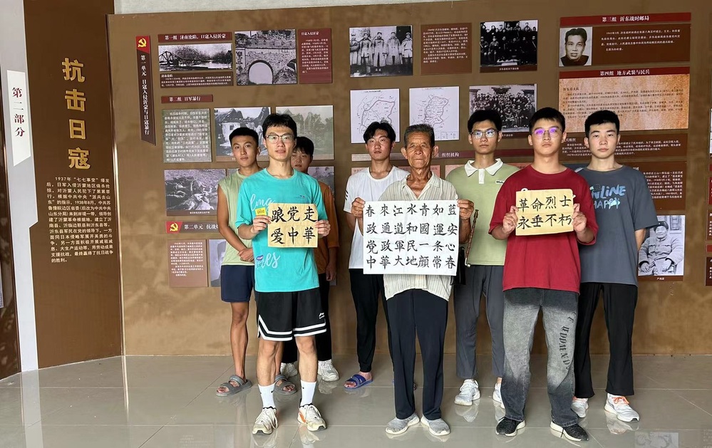 沂东烈士陵园是为了纪念在沂蒙山区英勇牺牲的烈士而建立的。在陵园里,我们默默凝视着革命烈士的墓碑,庄严而肃穆。我们寻访到当地的一名参加过对越自卫反击战的老党员,在他的带领下,参观了烈士纪念馆,望着那一张张年轻的面孔,感受到的是革命先烈为民族解放,国家兴旺而浴血奋战的英雄形象;他们用小米加步枪抱着革命必胜的信念,用鲜血和生命捍卫民族独立和人民的幸福;英雄的故事让我们热血而沸腾,革命先烈的奉献精神已深入人心,这种奉献精神体现了中华儿女的精神风貌和革命斗志。我们从老党员的讲解和触摸历史中汲取智慧和力量,深刻感受到了革命先烈们为追求共产主义事业所做出的巨大牺牲,作为新时代的建设者与接班人,要乘先烈之志,用习近平新时代中国特色社会主义思想武装头脑,热爱祖国、献身医学,做新时代建设社会主义现代化强国的“排头兵”“领头羊”。