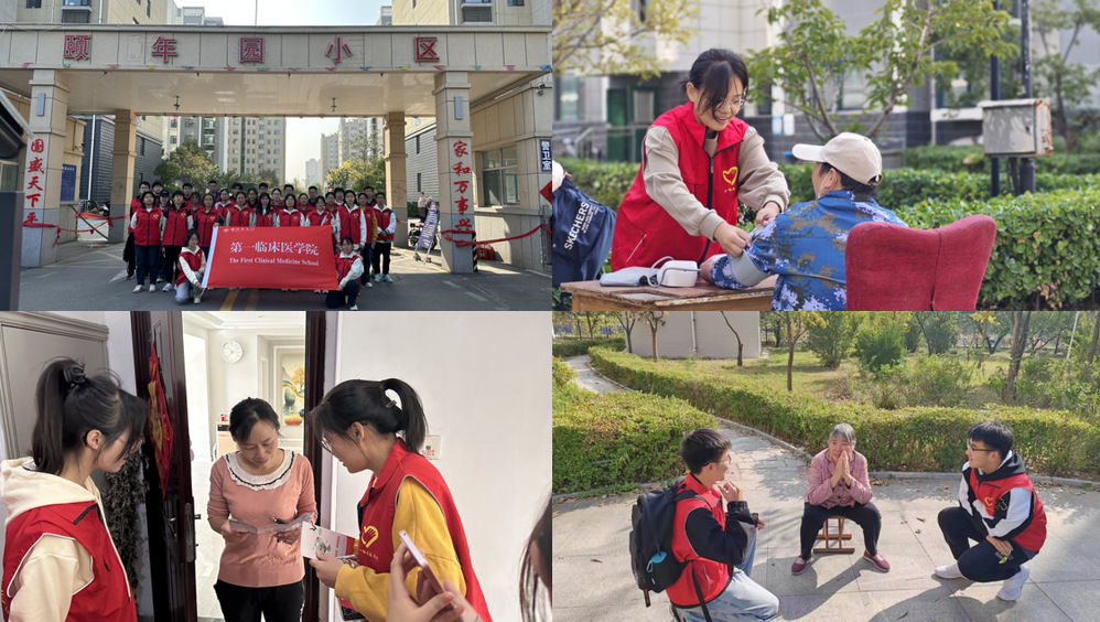 九九重阳节,慰问暖人心。志愿者们在福源社区内设置血压测量点,为社区居民测量血压,检测身体状况,保障身体健康;大学生深入社区,开展糖尿病、高血压等老年常见病和预防食源性疾病等健康知识宣讲,帮助居民提升科学养生知识,增强健康保健意识;走访看望老人,为老人宣传防养老诈骗等方面的知识,了解近期的生活状况,叮嘱老人们在秋冬季保重身体;最后志愿者们对小区周围的广场区域进行了清扫,重点清理隐藏在卫生死角的垃圾和道路两边堆放的杂物,为老人们提供更加舒心的活动场地。