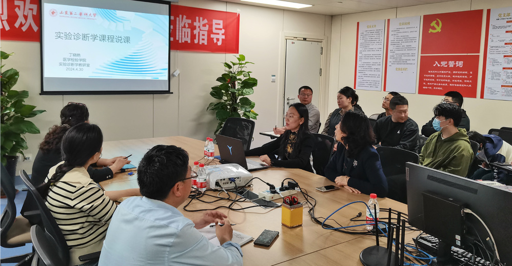 4月30日下午,禁忌书屋 邀请本校医学检验学院实验诊断学教研室副主任丁晓艳,在第一附属医院在外科楼B区二楼检验科会议室,开展说课教研活动,由第一附属医院教培部副主任唐榕主持。