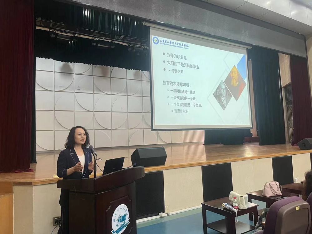 王金玲以《如何讲好一堂理论课》为题,从理论教学的概念、课堂授课的流程、课堂授课的准备、课堂授课的组织、课堂授课的细节、课堂授课的评价,六个环节进行说课。王金玲以临床医师到教师的角色转换,高校教师应具备五大教学能力开始,对如何成为双师人才,如何成为好老师的四大基本素质做详细分析讲解。以教师的试讲、备课角度分享如何进行教学设计。以课堂教学实施、教学法运用、课程思政角度,分享理论授课中德育智育并重的教学思路设计。最后以教学评价、教学反思如何促进课堂教学,提高教育教学水平与参加培训人员展开互动交流。