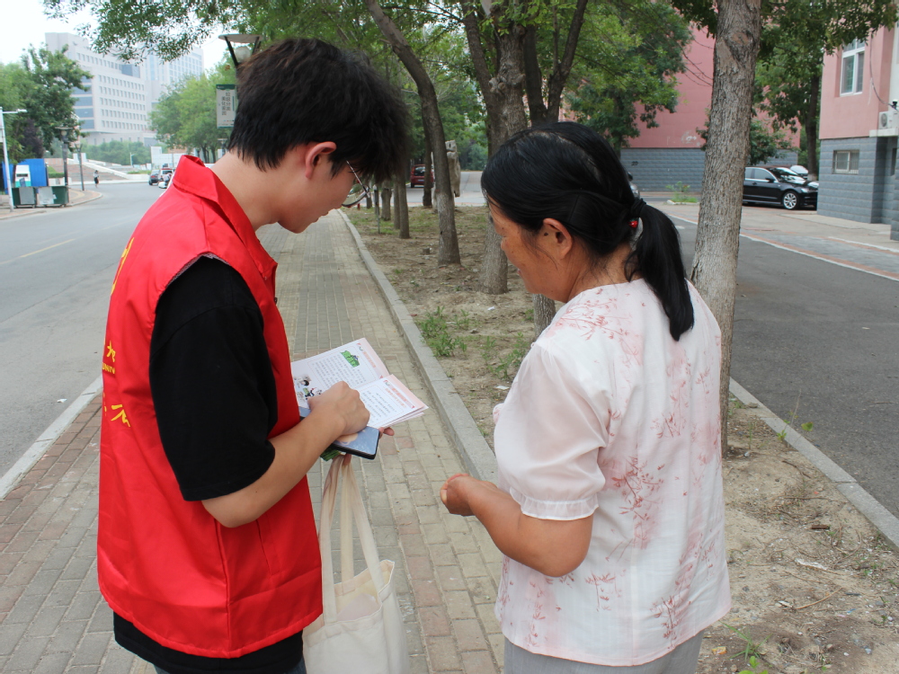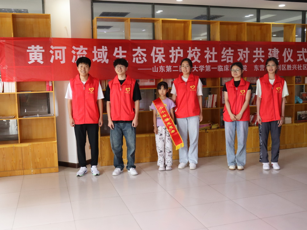 深入社区展服务,校社共建护黄河。为切实宣传黄河生态治理知识,积极传播和大力弘扬黄河文化,志愿者们走进垦利区胜兴社区,搭建校社合作平台,与胜兴社区结对,建立长效机制,培养“小小环保志愿者”,接力完成黄河流域生态保护志愿活动;张贴宣传海报和节水减排标识,调查黄河生态保护公众认识状况,以醒目方式提醒当地居民保护环境;发挥医学生专业优势,走上街头分发医学科普和环境保护等手册,宣传疾病预防和生态治理等知识,增强社区居民保护意识。