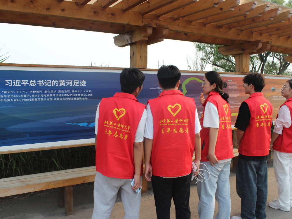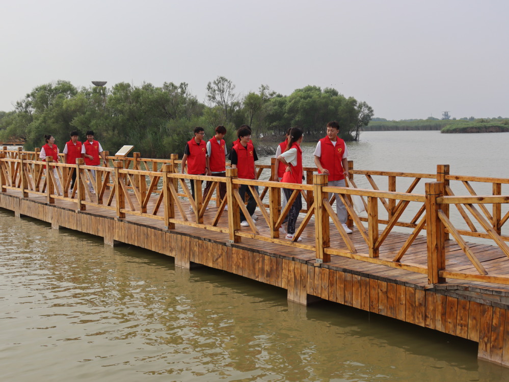 实地考察见变迁,黄河治理展新篇。志愿服务队成员前往黄河三角洲,重走习近平总书记考察路线,亲身体验黄河口生态环境,走进黄河三角洲生态监测中心,通过大屏幕直观了解黄河流路变迁、水质和生物多样性等情况;走进鸟类博物馆和天然柳林,了解黄河三角洲湿地风貌和珍稀鸟类,实地考察黄河三角洲候鸟栖息地中野鸭、丹顶鹤等野生动物的繁衍和栖息环境,切身体会到党和国家对黄河生态治理的重视。