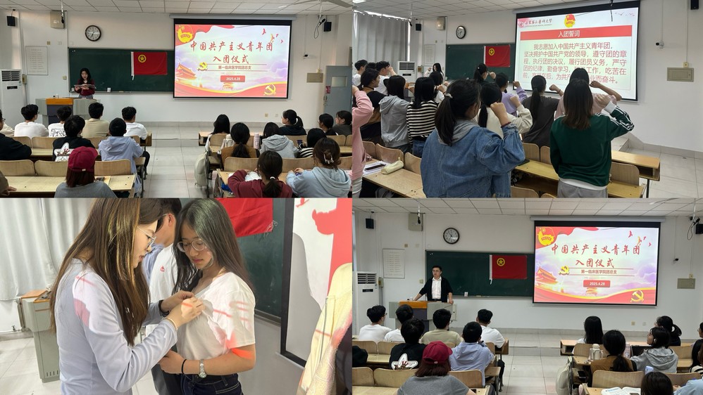 入团仪式在庄严的国歌声中拉开序幕,在宣读新团员名单后,由优秀团员代表为新团员颁发团员证,佩戴徽章。随后,全体团员右手握拳,在领誓人带领下庄严宣誓,铮铮誓言代表内心的坚定,表达对团组织的忠诚和担当。新团员代表侯凯文发言,表示将以团员标准严格要求自己,努力学习医学知识,用实际行动践行青春誓言。团总支负责老师向新加入共青团组织的团员们表示祝贺,强调共青团员肩负的使命与责任,鼓励新团员们在医学学习中发扬刻苦钻研精神,以“健康所系,性命相托”的医学生誓言为指引,积极参与社会实践,在服务他人中实现自身价值。