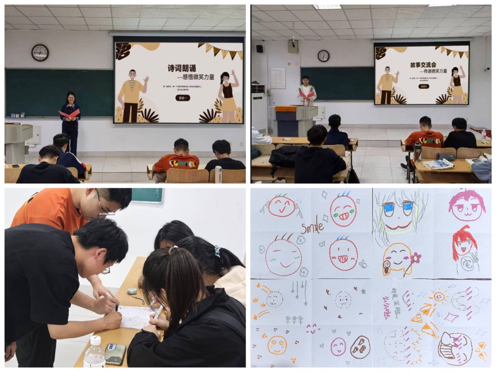 活动分为三个环节依次展开。诗词朗诵环节传递文化底蕴,同学们以声传情,深情演绎《你是人间的四月天》《微笑》等经典诗篇,用富有感染力的声音诠释微笑的魅力;主题绘画环节激发艺术灵感,画笔与色彩交织,充满创意的画作跃然纸上,将微笑的美好定格于画布;故事分享环节凝聚情感共鸣,同学们敞开心扉,讲述身边因微笑化解矛盾、带来温暖的动人故事,分享自己在低谷时因他人微笑重拾信心的经历,燃起努力的勇气。
