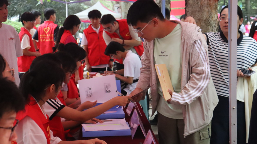 二、迎新板前留初忆,许愿树下写梦想。设置新生照片组成的迎新板,新生在此合影留念,记录大学第一刻,强化身份认同与集体融入感;设立“许愿树”,新生在展板写下对大学生活的憧憬与医学事业的追求,叶片承载心愿,汇聚成青春向上的力量,践行“乐道济世”的校训精神。