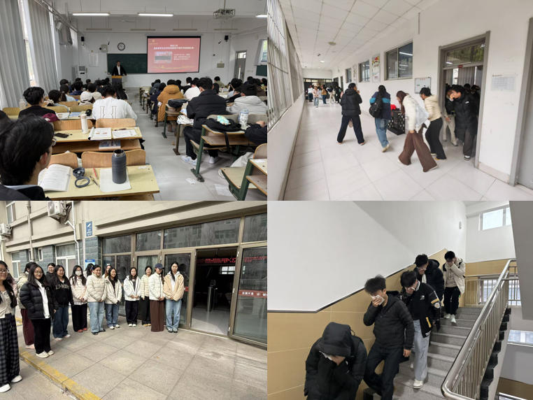 在理论教学环节组织学生观看《安全重于泰山》等纪录片,通过视频等影像资料引导学生深刻认识安全工作的重要性。辅导员结合近年来高校发生的真实案例,深入剖析事故成因及教训,内容涵盖交通安全、消防安全、网络安全、校外安全隐患、心理健康等多个方面,强化学生的安全意识和底线思维。在理论教学的基础上,学院组织全体学生开展应急消防演练,现场讲解灭火器使用方法、逃生出口位置及疏散路线,并模拟突发火情进行紧急撤离演练。通过实战操作,同学们熟悉了逃生技巧,掌握了基本消防器材的使用方法,切实提升了面对突发事件的应急处置能力。